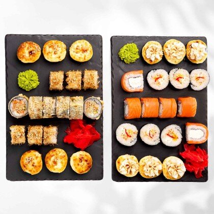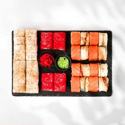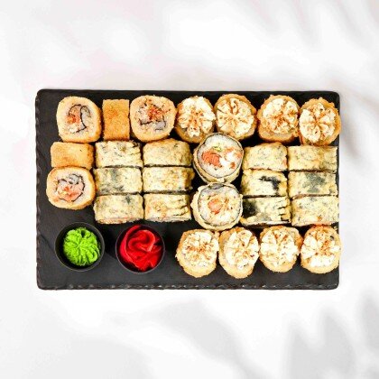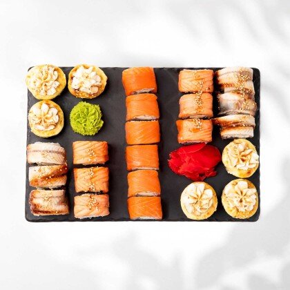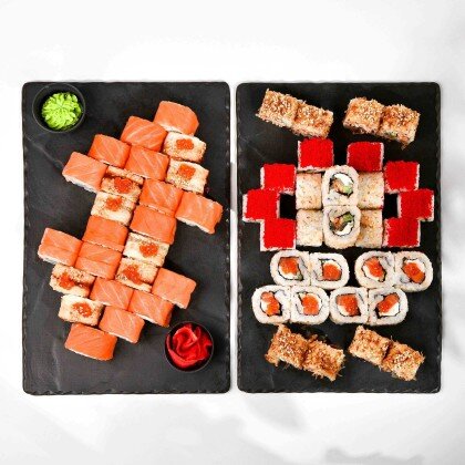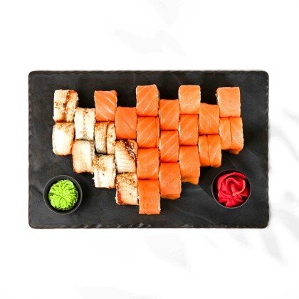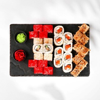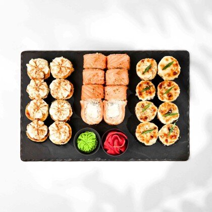 Филадельфия Classic (х1) Сливочный лосось (x1) Темпура ролл с лососем (x1) Запечённые роллы с лососем (x1) Подарок напиток (морс, coca-cola, fanta, sprite) 1л