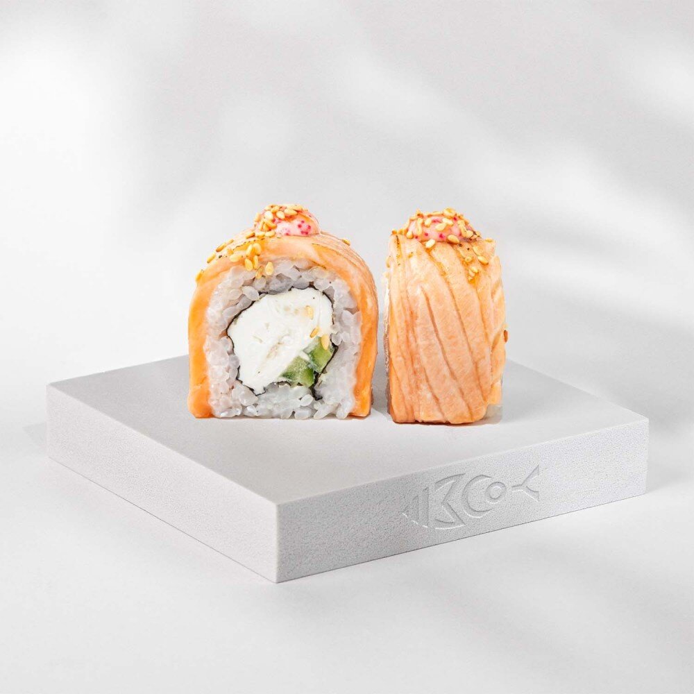 Семга, огурец, соус тобико, унаги соус, сливочный сыр, нори.