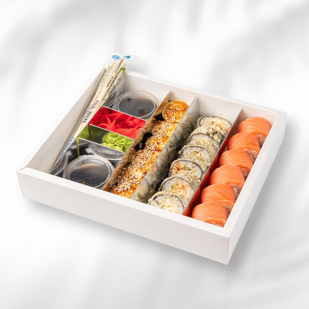 Филадельфия Classic - 6 шт., запечённый ролл с лососем - 6 шт., темпура с лососем - 6 шт.