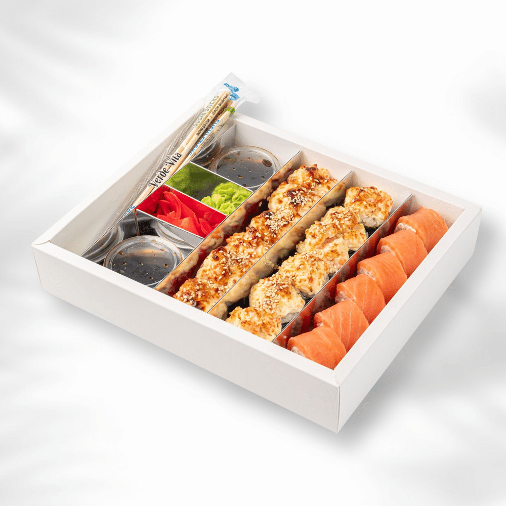 Филадельфия Classic - 6 шт., запечённый ролл с лососем и креветкой - 6 шт., запечённая Калифорния с креветкой - 6 шт.